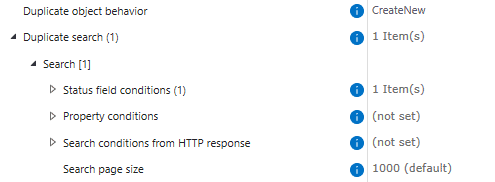 Duplicates detection defines how duplicate objects from an HTTP response are handled. In addition to skipping, overwriting, or creating new objects, you can also choose Upsert (creating new objects and overwriting existing ones).