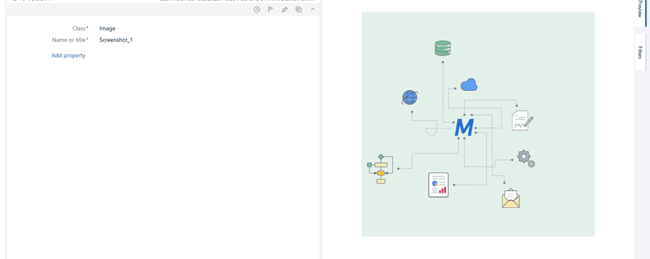 - Specify the image Property: If the image is stored as a property of the source object, define the corresponding property expression. The property we’re referencing is {Image}. Leave this field empty if the image file is directly attached to the source object.