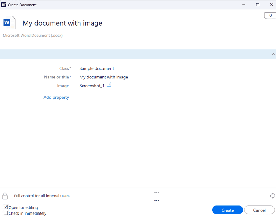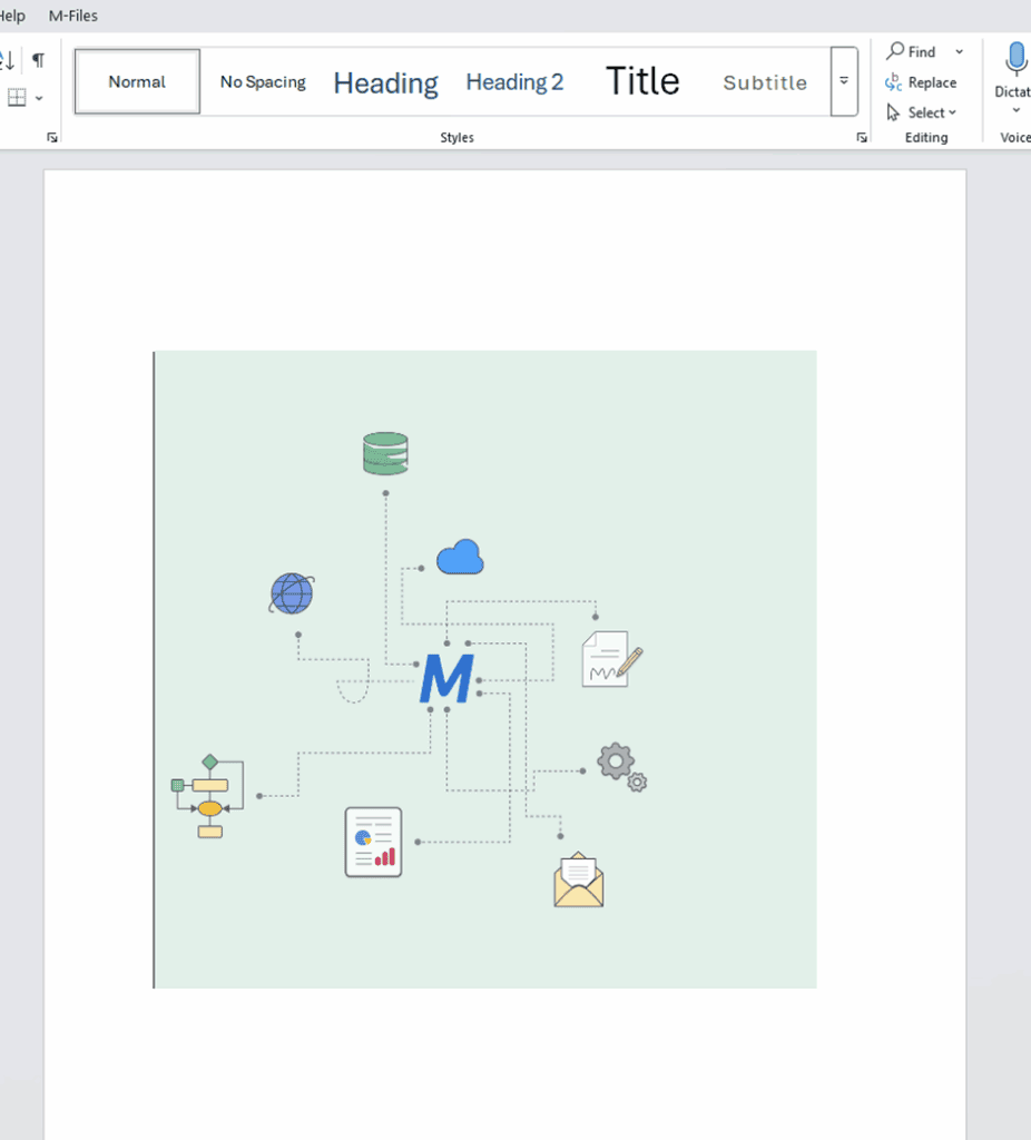 Let’s say we want to automatically insert an image from M-Files into a Word document whenever metadata changes. We can achieve this by using a bookmark in Word.